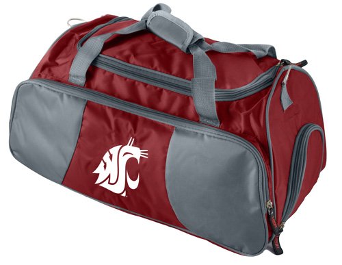 Made of 600 denier polyester and measuring 21"x11"x12" for ample storage, this gym bag features two handles and a removable shoulder strap to make carrying easy. Luggage attachment band on the back of the body. Large front pocket includes holders for pens, ID, and coins. Separate bottom compartment for tennis shoes. Offered in school colors with embroidered school logo on front of bag.