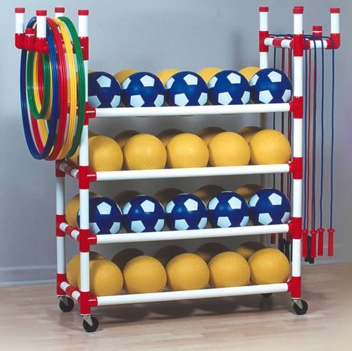 This cart gives children of all ages easy access to balls, hoops and jump ropes. One person can transport enough sports equipment to occupy an entire playground. Provides students with the recreational equipment they need to practice important develo...